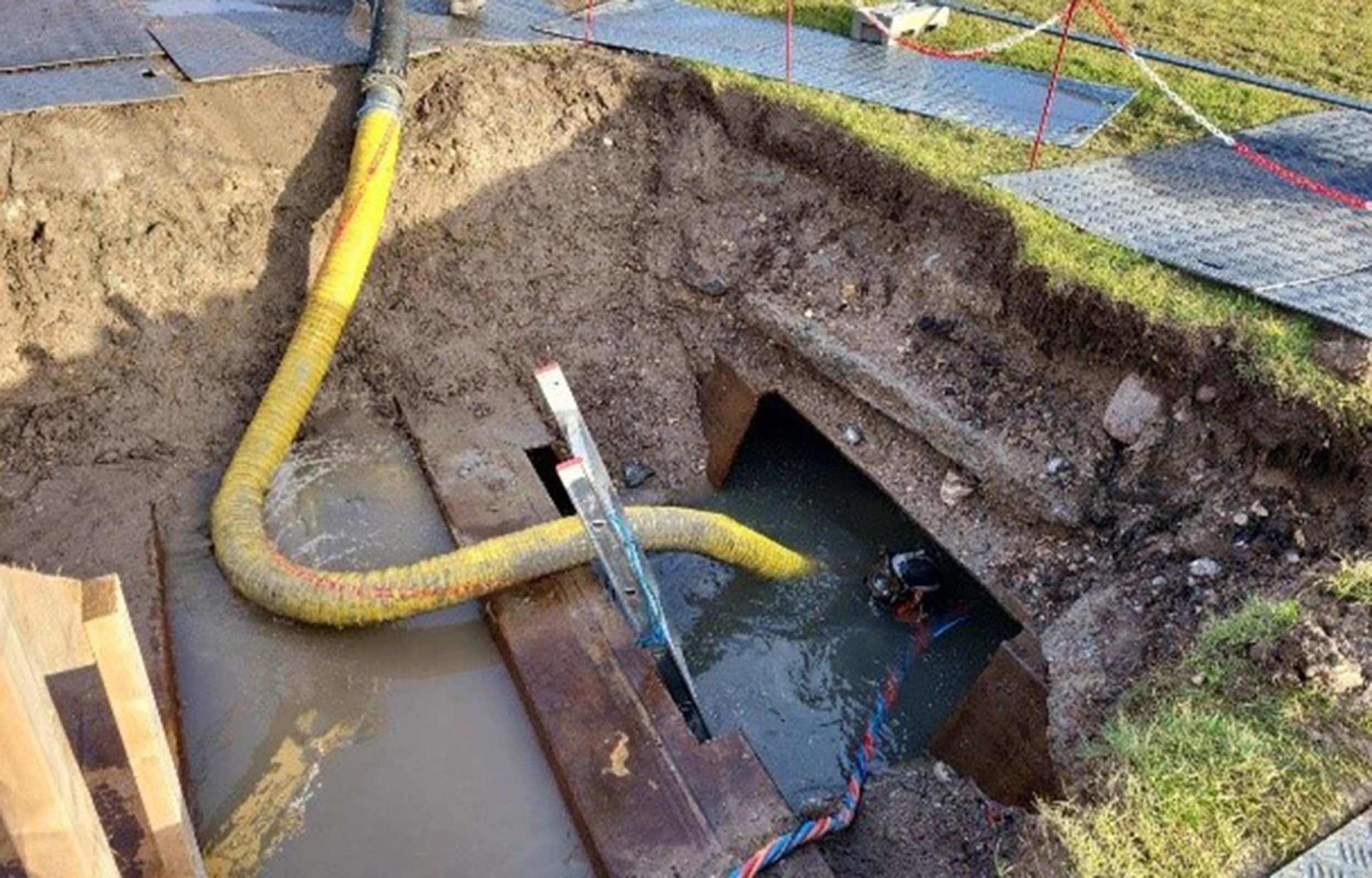 Den nødvendige løsning på problemet er begyndt at blive synlig. Novafos, leverandøren af vand og spildevand i Gentofte Kommune, har endelig lokaliseret utætheden på overløbsledningen.